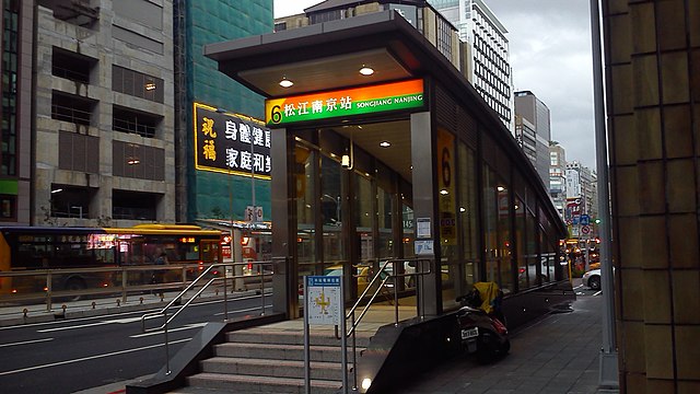 江路與南京東路口,為台北捷運以交叉路口命名之唯一東西向道路不在前端之特例,中和新蘆線車站位於松江路下方,松山新店線車站位於南京東路下方。